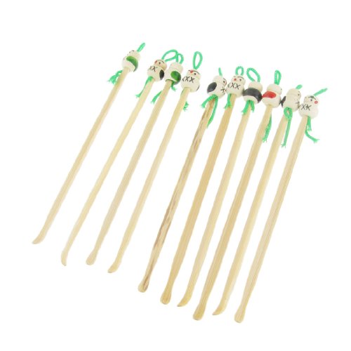 Japanese doll design top, bamboo material. These ear pick are safe to use with 0.4cm wide tip. Can keep your earpick clean and dry with a strap. Attention: Please use it with EXTRA CARE as it may have the potential to puncture the ear drum while improper using.