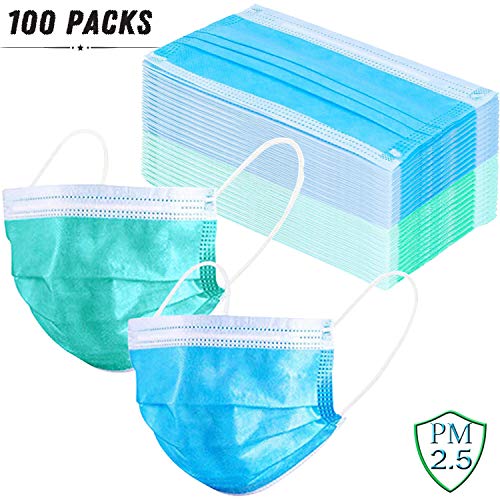 100 Pack Disposable Hypoallergenic Face Masks with Earloop, Anti Dust, Perfect for Medical, Industry and Catering, Blue and Green