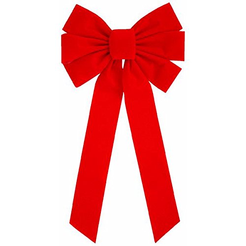 10" x 21" 7 Loop Red Bow - Deluxe medium 7 loop red flock bow with center loop. 10" x 21". - Color: Red, Length: 21", Width: 10"