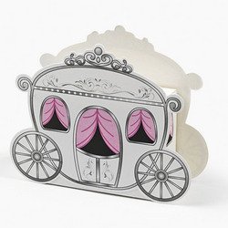 12 ~ Mini Princess Carriage Treat Boxes ~ approx. 1 3/4" x 2 3/8" ~ cardboard ~ simple assembly required ~ New in sealed package.