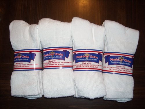 Fits womens' shoes 6-12,medium size mens ***Made in USA*** 80% cotton loose fitting, non-binding socks are great for poor circulation or diabetes. The top has 11 inch cross stretch and the bottoms have full cushion comfort.NOTE: SOCK SIZE AND SHOE SIZE ARE NOT NECESSARLY THE SAME.GENERALLY THE SOCK SIZE IS 1 OR 2 SIZES LARGER THAN THE SHOE SIZE... SIZE 9-11 SOCKS WILL FIT MENS SHOE UP TO ABOUT 9, AND LADIES SHOE UP TO 10 1/2. IF YOU HAVE WIDE OR NARROW FOOT CONCERNS, PLEASE KEEP THAT IN MIND REGARDING SIZES. IF YOU HAVE CONCERNS REGARDING: EDEMA,NEUROPATHY, SWELLING,SENSITIVITY,ITCHING,DRY SKIN, OR FOOT AND LEG DISORDERS, PLEASE CONTACT YOUR MEDICIAL PROVIDER.This brand of diabetic sock is considered MID-WEIGHT for more toe seam comfort. The thicker the sock ,the larger is the seam on the toe. This style has a terry lining in the foot area, but is not considered thick and uncomfortable. The weight for a crew style of this brand is 18-22 oz. per dozen. Both thicker or thinner socks are available in other brands