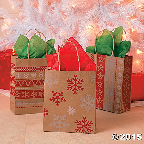 Use this pretty packaging for Christmas gifts, holiday party favors or crafting! Each paper bag measures 9" x 3 1/4" x 7 1/4" with 4" jute handles! This beautiful gift bag also makes great packaging for baked goods!