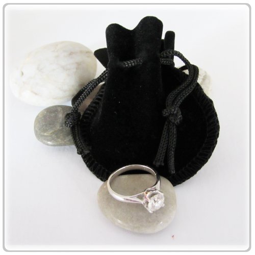 5 New Black Drawstring Jewelry Pouches. This is a new set of 5 black velvet draw string rounded pouches. They are great for r jewelry pieces, especially as a gift. Great for using when you are traveling. These pouches elegant and will enhance the beauty of your jewelery whether it's a watch, gems, diamonds, watch, bracelet, ring, necklace etc.