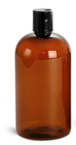 16 oz Amber Plastic Bottle, Black Disc & Gift Tags - 6 pk
