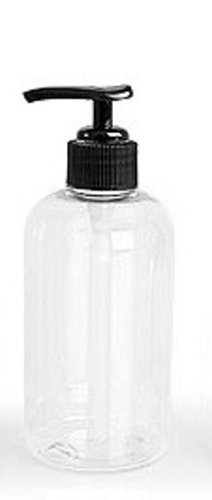 The 16 oz clear PET / BPA free Boston plastic bottles come with black dispensing pumps dispensing 0.5 ml of product per stroke. The black lotion pumps come shipped to you in the locked position. Also includes six complimentary gift tags.
