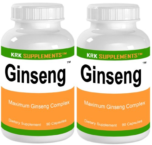 2 Bottles Ginseng 1000mg Per Serving Panax Ginseng Eleutherococcus Senticosus Extract Korean Ginseng 180 Total Capsules KRK Supplements