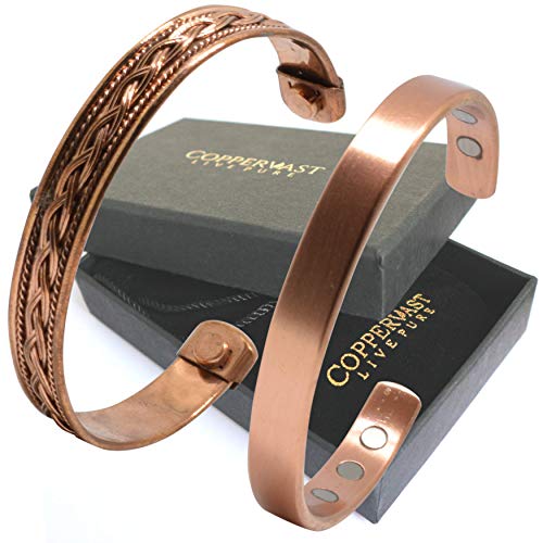 Copper Bracelets for Arthritis - Therapy Magnetic Bracelets for Men and Women with 6 Powerful Magnets - Effective and Natural Relief for Joint Pain and Arthritis (Set of 2 Plain with Braided Inlay)