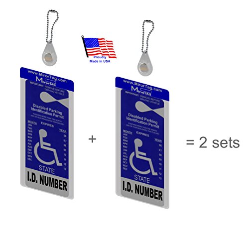 It is illegal in all states to drive with your handicap tag hanging from the rearview mirror, but it is not easy to hang and remove the placard as required by law. Mirortag is designed to protect and preserve your tag. It allows you to easily display and put away your handicap parking placard. Simply insert your tag into the plastic holder, attach and adjust the Magnet Charm to desired length on rearview mirror once. When parked, move plastic holder close to Magnet Charm and the magnet will snap onto the metal plate of the holder to hold the placard in place. Before your drive, simply pull down the plastic holder to unlatch it from the Magnet Charm. MirorTag Charm has a super strong magnet that keeps the placard and Magnet Charm held together. Unlike all flimsy sheaths, it has a detachable sturdy Magnet Charm that is sun & cold-resistant and will not melt or break or we will replace it free. Holder will protect your placard from cracks, tears and creases. Extra Magnet Charms can be purchased separately for multiple cars. WARNING: rearview mirror built-in compass operation may be affected by the magnet in some car models. 2 holders and 2 Magnet Charms included. Patent pending and Made in USA.