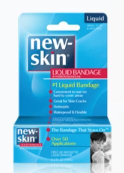 New-Skin® Liquid Bandage dries rapidly to form a tough protective cover that is antiseptic, flexible, waterproof, and lets your skin breathe. Just brush on New-Skin® Liquid Bandage - One stroke protects the wound by keeping out dirt and germs and provides protections against infection with an antiseptic. Completely covers the entire wound to keep out dirt and germs. Convenient to use on hard to cover areas.