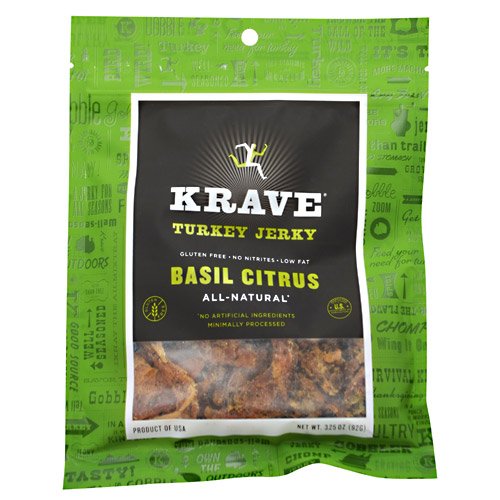 Turkey Jerky. Gluten-Free. No Nitrates. Low Fat. All-Natural. No Artificial Ingredients. Minimally Processed. . Live a Cut Above. With amazingly unique and savory flavors, Krave Jerky is moist, wholesome and seriously satisfying... whether you're navigating the trail, the turnpike or Tuesday afternoon. So give in to the Krave, because life is meant to be meaty. Move. Eat. Live. Krave. We infuse succulent all-natural turkey with tangy citrus and robust basil, for a jerky that's soft, subtly seasoned and simply bursting with flavor.