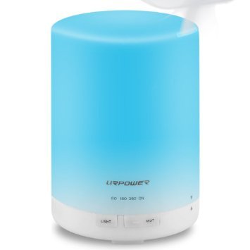 300ml Aroma Essential Oil Diffuser,URPOWER Ultrasonic Air Humidifier with AUTO Shut off and 6-7 HOURS Continuous Diffusing - 7 Color Changing LED Lights and 4 Timer Settings for Home SPA Baby Room