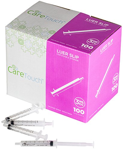 These Care Touch Luer Slip Syringes are individually sealed with a total of 100 syringes per box.