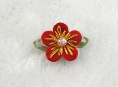 40 Pcs Felt Flower W/bead Leaf Appliques/craft -8 Colors -(Pick Color) (Red)