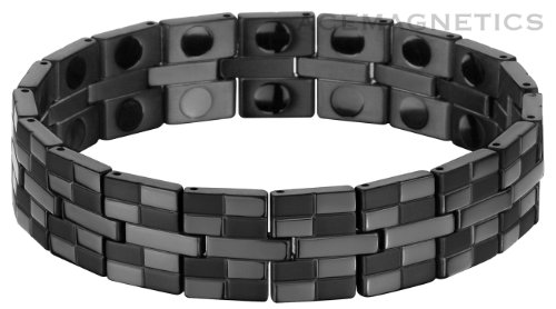 42TG "BigFoot Titanium Make tracks with the gun metal finished "Big Foot" magnetic bracelet. Our 42TG Titanium Magnetic Bracelet comes in an unconventional gun metal black finish as stalwart as a powder blast. Features: Width: 5/8' Weight: 1 ¼ ounce Clasp: Fold Over Snap Magnet Type: 8,000 gauss per link, total 120,000 - 152,000 gauss for 8.25 to 9 inches. Metal: Hypoallergenic Titanium Finish: Gun Metal Black Magnetic Bracelet that Looks and Feels Great "BigFoot" is as enduring as the legend and under the alternating patterns of brushed and polished bars are two powerful neodymium laser point permanent magnets at 4,000 gauss per magnet for 8,000 gauss per link. These north facing neodymium magnets will either lose 1% of their strength ever 10 years or lose virtually no strength at all. Reliable Service and Delivery Become part of the legend in as few as 3 days because we ship fast and free with tracking when an e-mail address is provided at checkout. Your Satisfaction is Guaranteed Since 1996.