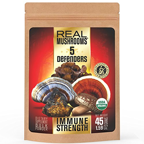 At Real Mushrooms we pride ourselves on knowing that our mushroom products are of the highest quality. Our 5 Defenders is made from 100%, certified organic, reishi mushroom, chaga mushroom, maitake mushroom, shiitake mushroom and turkey tail mushroom. They are hot water extracted to pull out the beta-glucans. In the case of Reishi and Chaga, they are also extracted with alcohol to obtain the non-water soluble triterpenes. This is commonly called dual extraction.