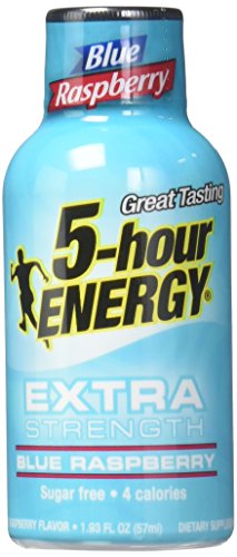 Need an extra boost to get through your day? Grab a Blue Raspberry extra Strength 5-hour ENERGY shot. It's packed with a big energy blend and big taste. The only thing small about it is its size. So, why sip yet another coffee when you can have a Blue Raspberry Extra Strength 5-hour ENERGY shot and get hours of energy?