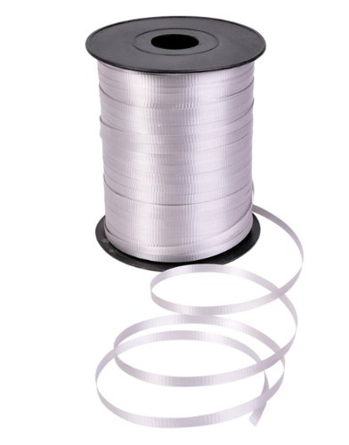 500 yards per roll Water resistent 3/16" Wide SILVER Curling Ribbon Adds a festive touch to decorations, gifts and balloons. Crimped finish makes curling easier. Durable poly ribbon. Perfect for gifts, balloons, or any other occasions