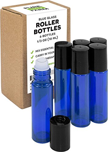 6 Blue Aromatherapy Roll-on Bottles. Use with Essential Oils.