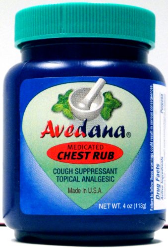 Have a cold? Feeling congested? Sore muscles? Rub some on! Avedana brand medicated chest rub is a great way to ease the symptoms of the common cold and also relax those sore muscles. A potent and soothing blend of Camphor, Eucalyptus oil and Menthol provides fast relief. When in pain, think Avedana...it means "no pain!".