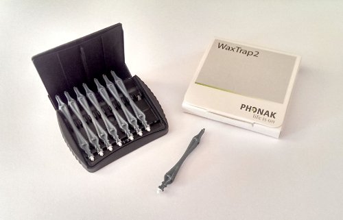 NEW. 6-packs of 8 filters per pack of the Phonak WaxTrap2. Wax guard for Phonak receiver-in-canal and custom hearing aids using the Cerustop or Wax Trap systems. Please note that this is the new WaxTrap2 system. They are fully interchangeable with the older WaxTrap filters. The removal stick is now threaded which makes removal easier. To remove the old wax guard, insert the threaded end in the opening of the wax guard, twist and pull out the old guard. To insert the new filter, flip the tool and insert the new wax guard.