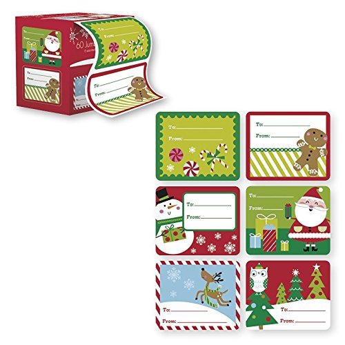 60 Jumbo Self Adhesive Christmas Gift Labels in Easy To Use Roll Just Pull & Place - Juvenile (6 Different Designs)