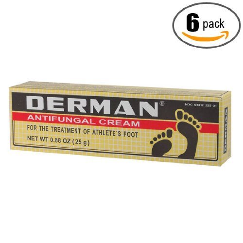 Description: DERMAN Antifungal Cream for the Treatment of Athlete's Foot Benefits: Itching Peeling Soothes Cracking Burning. Directions: Wash the affected area and dry thoroughly. Apply a thin layer of the product over the affected area twice daily (morning and night) or as directed by a physician. Use daily for 4 weeks. Tips and Tricks: Pay special attention to spaces between the toes, wear well fitting, ventilated shoes. Change shoes and socks at least once daily. Size: 0.88 oz. This product is not effective on the scalp or nails.