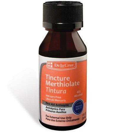Description: Merthiolate is a Mercury free antiseptic for external use to prevent infection in minor cuts, scrapes and burns. Directions: Clean the affected area and add a few drops or simply apply on a cotton ball/swab to control the amount of Merthiolate applied. Size: 1 oz. For external use only This item qualifies for Small International Flat Rate Shipping.     Limit of 6 total items per order if you use this shipping method.     Items allowed to be combined: Decolorized Iodine , Iodine Tincture , Gentian Violet , Merthiolate Tincture , Lavender Oil , Tea Tree Oil , Peppermint Oil