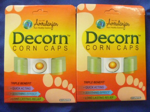 - Amrutanjan Decorn Corn Caps Lot Size : - 8 Pcs Corn Caps Triple Benefit Quick Acting Soothing Effect Long Lasting Relief Amrutanjan Corn Caps Provides Quick Soothing Action for Achieveing Soft Feet. It Has Ayurvedic Medicne for Corn Removalin the Foot. It is Quick Acting and Provides Long Lasting Relief.
