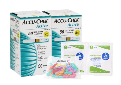 Bundle Includes: 100 Accu Chek Active Test Strips, 100 Alcohol Pads, 100 Active1st 30 Gauge Lancets. Strips are comparable with all Accu-Chek Active meters. Lancets are comparable with most lancing devices.