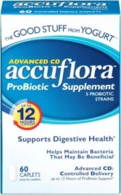 accuflora contains 5 beneficial probiotic strains including Lactobacillus acidophilus, the live culture typically found in yogurt. accuflora may help replenish your body’s good bacteria and maintain a healthy digestive system. *