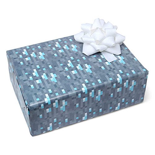 Adorox 8-Bit Pixel Diamond Ore Minecraft Birthday Christmas Gift Wrapping Paper (3 Sheets) (Diamond Ore (3 Sheets))