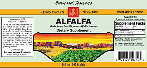 Our new alafalfa tablets are now 9 grain size. this means that when taking the suggested serving size of 5 tablets, you will be getting 2950 mg of alfalfa leaf powder rather than 2750 mg. made from sun ripened alfalfa leaves. Eight pounds of fresh premium alfalfa leaves are used to produce one pound of our quality dried alfalfa. Alfalfa tablets are an important ingredient in the 7 day cleanse because all the fiber material remains from the stems and fiber structure of the alfalfa leaves. These act as bulk for a ballooned or weakened bowel. this allows for a faster transit time through the bowel.