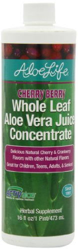 The cherry berry whole leaf aloe vera juice concentrate is the highest quality aloe vera in a bottle providing maximum benefits when taken daily, with 7 percent natural fruit juice concentrate added no sugar. Benefits include help with digestion and abs option when taken before meals, energy, immune system support, anti inflammatory support for the tissues and joints, allergies, liver support, bowel distress, skin.