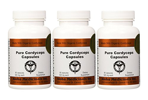 Aloha Medicinals Inc Pure Cordycepsf, 90 capsules per bottle, 525 mg(Pack of 3)