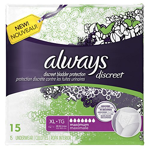 Finally, your sensitive bladder can feel like no big deal - and that’s a really big deal! Whether you’re relaxing at home or running errands, the last thing you want is to think about your sensitive bladder. That’s why we designed our innovative incontinence products to be the perfect combination of form, function, and femininity. Always Discreet Underwear provides our most absorbent bladder protection so that you can be confident. Perfect for those times when you need heavy coverage, this underwear was made with you in mind. Designed for incredible comfort, only Always Discreet has soft Dual LeakGuards that help prevent leaks where they happen most – at the legs. The Advanced Triple Layer Core helps pull, trap, and lock away urine wetness while the soft cotton-like waistband gives comfortable incontinence protection. Our exclusive OdorLock technology neutralizes urine odors instantly and continuously, helping keep your overactive bladder discreet. Always Discreet Maximum Underwear features a feminine design with purple waistband that indicates the back and comes in Small/Medium, Large, and Extra Large. With Always Discreet Maximum Underwear, you can stop constantly worrying and get back to enjoying the little things!