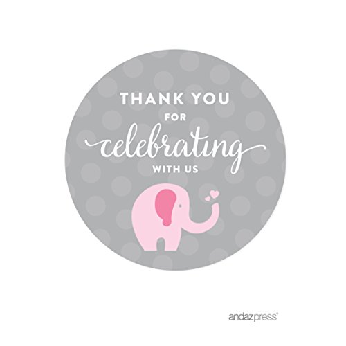 Andaz Press Pink Girl Elephant Baby Shower Collection, Round Circle Label Stickers, Thank You for Celebrating with Us!, 40-Pack