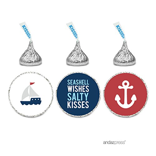 Andaz Press Sail Away Nautical Birthday Collection, Salty Kisses Chocolate Drop Labels Trio, Fits Hershey's Kisses, 216-Pack, Ocean Sea Whale Octopus Seahorse Seashell Mermaid Sailboat Ship Cruise Travel Themed Stickers