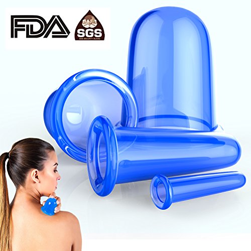 Anti Cellulite Cupping Therapy Set of 4 Silicone Suticon Cups - Chinese Cupping Kit for Cellulite Body and Facial Massage, Vacuum Cupping Cup for Adults Home Use