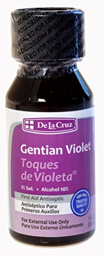 Gentian violet has been used since the 1890's. Gentian violet is a proven antiseptic dye commonly used to treat fungal infections of the skin like ringworm and athlete's foot. It is also good for cuts, scrapes and bruises, due to its mild antibacterial effects to prevent infection. The name is due to its color, note that it is not made from gentian or violet flowers. Fungal infections, including fungal skin infections, oral candidiasis (oral thrush), and vulvovaginal candidiasis (vaginal thrush). IT has also been used to treat oral thrush in patients who are HIV-positive. Superficial bacterial skin infections such as infected eczema, boils, and chronic (long-standing) leg ulcers. Gentian violet may also be active against Methicillin-resistant Staphylococcus aureus (MRSA). Oral hairy leukoplakia (white plaques on the edges of the tongue). This condition occurs in patients with weakened immune systems, particularly HIV-positive individuals. Oral hairy leukoplakia is associated with Epstein-Barr virus (EBV), the cause of glandular fever. EBV infection results in the generation of reactive oxygen species; gentian violet is thought to work by inhibiting reactive oxygen