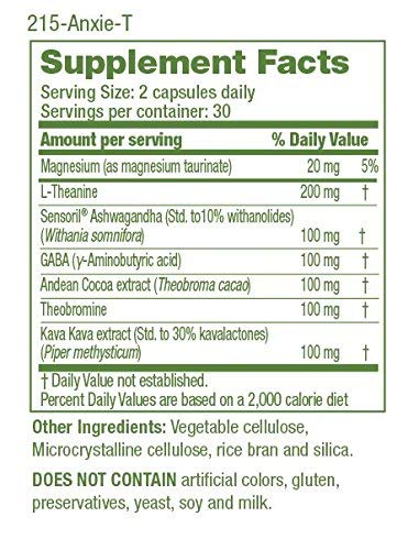 • LIVE HEALTHIER AND HAPPIER: Take two Anxie-T stress support supplement capsules each morning, with or without food. Another capsule may be added in the evening for additional support.