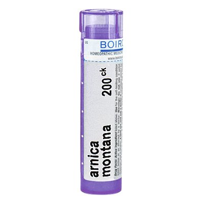 Arnica Montana 200CK by Boiron 80 Pellet Muscle Aches and Stiffness swelling from injuries discoloration from bruising Use for the self limiting condition listed above or as directed by a doctor Warnings Do not use if pellets dispenser seal is broken Stop use and ask a doctor if symptoms persist for more 3 days or worsen If pregnant or breast feeding ask a health professional before use pKeep out of reach of children Directions Adults children dissolve 5 pellets in the mouth 3 times a day until symptoms are relieved or as directed by a doctor. Contains approximately 80 pellets Inactive Ingredients Lactose Surcose Active Ingredient Arnica Montana