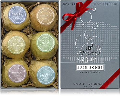 Our set of 6 Bath Bombs has been designed to target specific needs and ailments. Superior to fizzers made in Bath Bomb Kits, our relaxing antioxidant rich fizzers help you to rid your body of toxins and harmful chemicals by deeply cleansing your skin and hair. Joint and Muscle relief comes in the form of our rich epsom and sea salt soaks which help to reduce the effects of inflammation and stiff, sore muscles. Deeply relaxing aromas of cinnamon and vanilla are an ideal and all natural way to reduce stress and aid in the relief of stress & anxiety. Nourishing shea and cocoa butters help to treat dry skin associated with eczema, psoriasis, or cold weather dryness. Each bath bomb is like having a spa treatment right at home. The natural sea clays that make up our fizzers are packed with the nutrient rich minerals found in mud masks and wraps. Treat yourself and your family to natural and fun healing of dry skin, sore muscles, and stiff joints while enjoying a restful break from the hectic world around you with Art Naturals Bath Bomb fizzers. The perfect gift for yourself or the special someone in your life. Art Naturals Bath Bombs are fun and easy to use, simply add water. Once you have selected which bath bomb to use place your fizzer into a warm tub after it is approximately ⅓ full. Bath Bomb will dissolve releasing gentle bubbles of citric acid and deep moisturizers of All Natural Virgin Shea Butter and Cocoa Butter. Deeply cleansing Dead Sea and Epsom salts mix with these butters to bring you a professional quality spa treatment in the comfort of your own tub. Ideal for Men, Women, and Children our bath Bombs are a way to bring some fun and fizzle to bath time getting your kids excited about bathing while bringing moisture rich treatment and antioxidants to their skin. Our Bath Bombs fizz comes from an all-natural citric acid which gives you the fun and fizzle of a spa bath without irritating your skin.