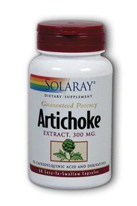 Artichoke Leaf Extract by Solaray 60 Capsule Size 60ct 300mg Directions As a dietary supplement take two capsules one or two times a day with meals or a glass of water. Serving Size 2 Capsule 30 Servings per container Ingredients Amount per serving Daily Value + Artichoke (Cynara scolymus) (leaf) 50 mg Artichoke (Cynara scolymus) (leaf extract) (Guaranteed 30 mg 5 caffeolquinic acid and derivatives) 600 mg Key to Ingredients Daily Value not established. + Percent Daily Value is based on a 2 000 calorie diet. Values differ depending on age Values differ depending on age Other Ingredients Cellulose Gelatin Capsule Magnesium Stearate and Silica Other See product label for more information.