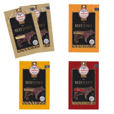 - Variety pack contains: 2 Original, 1 BBQ, 1 Teriyaki, 1 Spicy