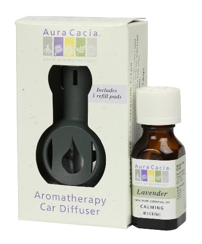 Aura Cacia Aromatherapy Car Diffuser - Lavender Commuter Pack An aromatherapy diffuser designed especially for the car. Includes car diffuser replacement filters and 0.5oz 100% Pure Lavender Essential Oil. Suggested Use: Place 4-6 drops of any 100% pure Aura Cacia essential oil or blend onto car diffuser pad. Slide the pad into the diffuser and plug into the lighter outlet. Remove the Car Diffuser when not in use. For best results, use a new car diffuser pad when switching oils. WARNING: Avoid direct contact with saturated car diffuser pad to prevent possible skin irritation. Do not allow saturated car diffuser pads to come into contact with car interior.