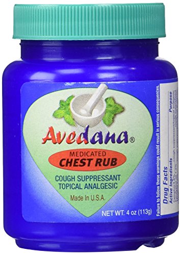 Have a cold? Feeling congested? Sore muscles? Rub some on! Using Avedana brand medicated chest rub is a great way to ease the symptoms of the common cold and also relax those sore muscles. A potent and soothing blend of Camphor, Eucalyptus oil and Menthol provides fast relief. When in pain, think Avedana...it means "no pain!".