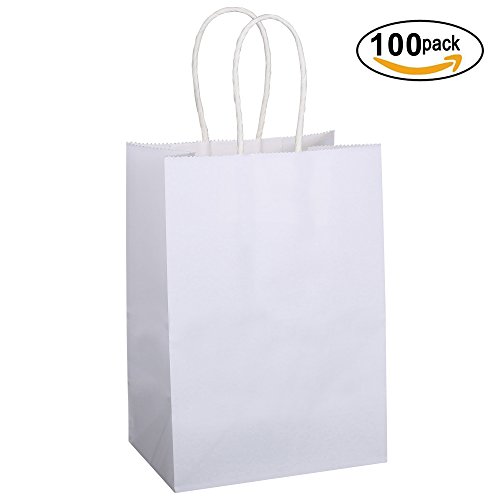 BagDream Kraft Paper Bags 100Pcs 5.25"x3.25"x8", Party Bags, Shopping Bag, Kraft Bags, White Bags with Handles 100% Recyclable Paper