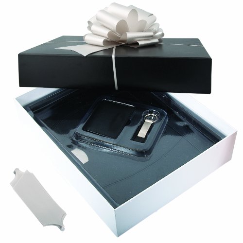 The perfect gift for busy professionals. Keep organized in the . office with this three piece gift set. This gift set includes . padfolio, business card holder/wallet and key ring . holder.. Gift Box:. These items are packed inside an elegant black gift box and . include a silver colored pull bow with satin finish to make the . perfect bow every time! Bows comes inside a clear sleeve and are . packed inside the gift box.