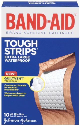 Inside every Tough Strips bandage you'll find these unique technologies: Waterproof, 100% waterproof. Shields out water, dirt and germs even when wet. Superior Adhesion, SuperStick adhesive to stay on longer. Durability, up to 2x stronger than ordinary waterproof bandages. Not intended for use on sensitive or delicate skin. A covered wound heals faster than an uncovered one. The makers of BandAid Brand do not manufacture store brand products.