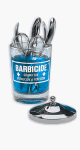 Barbicide Manicure Table Jar for convenient disinfection of nail implements, drill bits and accessories. The container is made of high quality, durable glass with stainless steel lid. Holds 4 fluid ounce 3 1/2 inch.